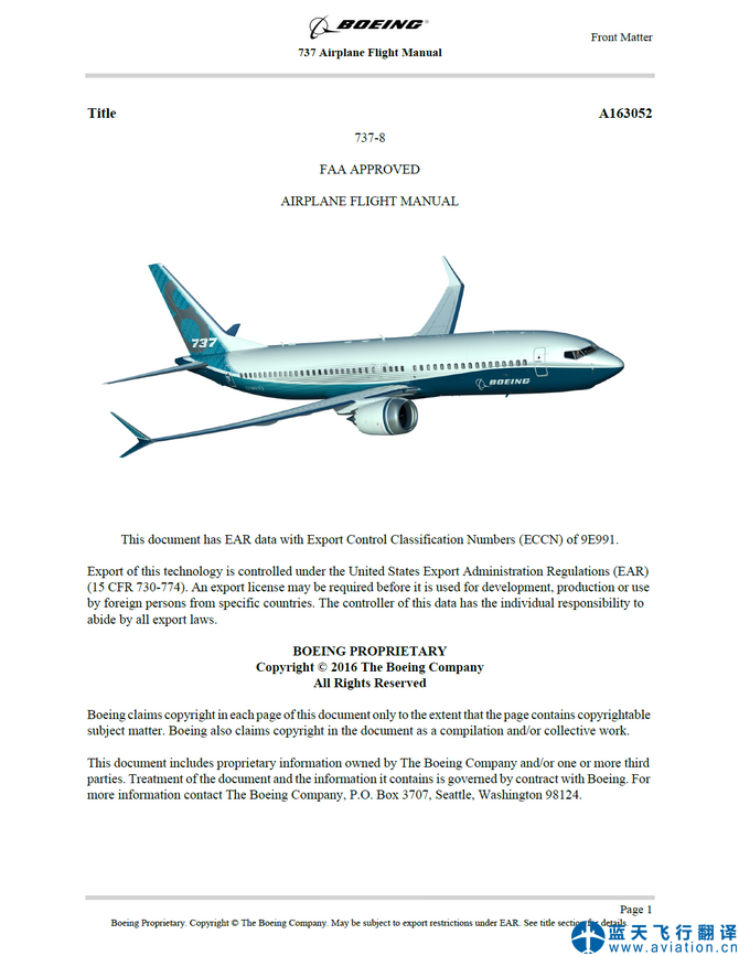 北京藍天飛行翻譯公司承接737MAX飛機飛行手冊轉版任務 pdf轉word