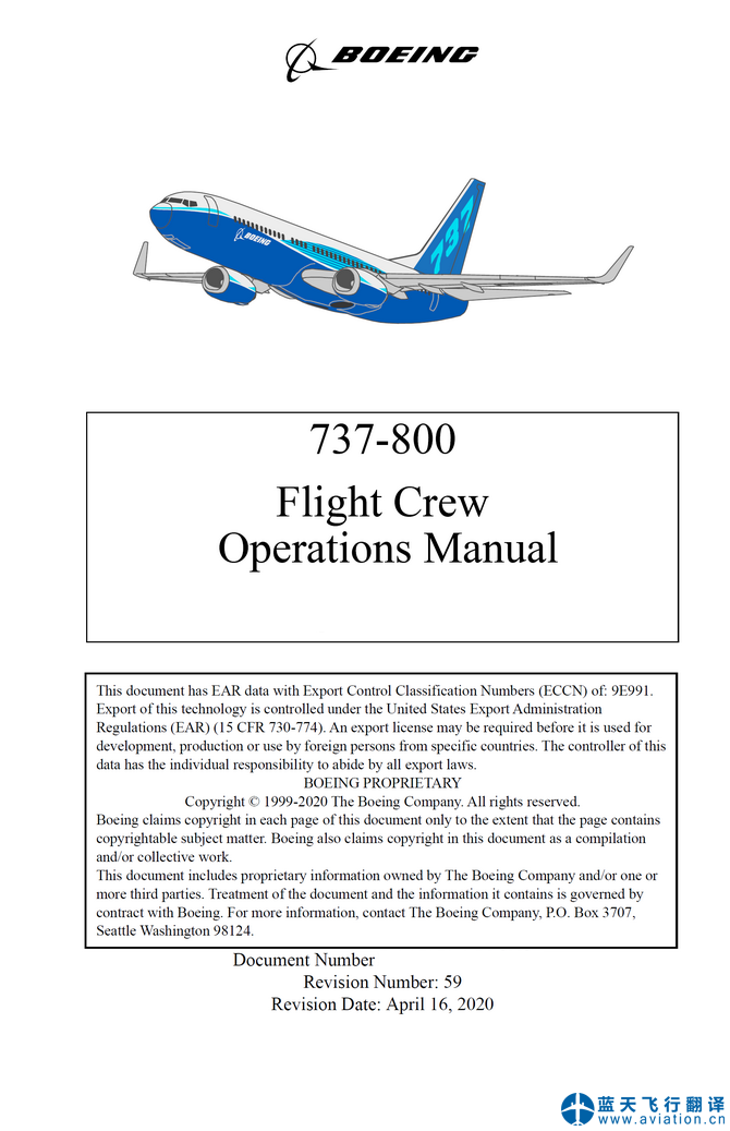 北京藍天飛行翻譯公司承接航空公司的737-800飛行機組使用手冊、快速檢查單和飛機飛行手冊翻譯任務(wù) 737-800 Flight Crew Operations Manual, Quick Reference Handbook and Airplane Flight Manual Translation