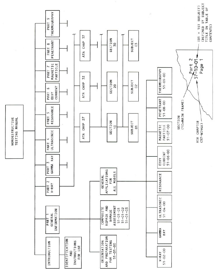 無損檢測手冊是機(jī)體、發(fā)動機(jī)和部件制造廠編制的無損檢測程序,不僅包含主要的和輔助的結(jié)構(gòu),而且包括專利的部件的檢測程序,是機(jī)體、發(fā)動機(jī)和部件制造廠在真實(shí)的構(gòu)件上和原位實(shí)際狀態(tài)下經(jīng)過驗(yàn)證可以實(shí)施的程序,每種機(jī)型均有相應(yīng)的無損檢測手冊,制造廠家定期進(jìn)行更新和修正,在兩次定期進(jìn)行更新和修正之間通常發(fā)布一些臨時(shí)修正,在使用時(shí)要注意采用有效版本。