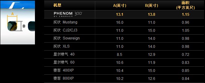 飛鴻300公務(wù)機(jī)窗戶尺寸對比 |