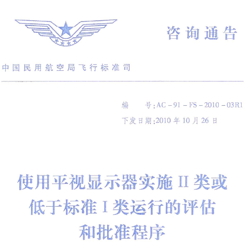 藍(lán)天飛行翻譯公司承接中國(guó)民用航空局飛行標(biāo)準(zhǔn)司的使用平視顯示器實(shí)施II類(lèi)或低于標(biāo)準(zhǔn)I類(lèi)運(yùn)行的評(píng)估和批準(zhǔn)程序咨詢(xún)通告翻譯任務(wù),編號(hào)AC-91-FS-2010-03R1 Advisory Circular Translation