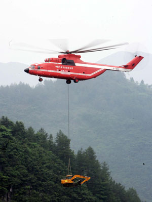 米26直升機在執(zhí)行搶險救災(zāi)任務(wù)