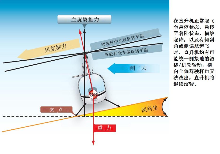 To view this page ensure that Adobe Flash Player version 9.0.124 or greater is installed. 4.3.2 相關研究一般來說,無論地面是否平整,直升機駕駛員均應嫻熟操作。如果直升機在正常起飛著陸與斜坡起飛著陸的情況下均使用相同的傾斜角(直升機與水平面的夾角),或者滑橇/ 機輪位于地面時直升機出現(xiàn)漂移,那么該傾斜角或漂移會使直升機繞仍然接地的滑橇/機輪轉(zhuǎn)動。當這種情況發(fā)生時,相比懸停的直升機而言,橫向操縱駕駛桿的反應速度會更加緩慢,且效果較差。如果允許滾轉(zhuǎn)速率繼續(xù)增大,那么傾斜角將達到臨界值,即使全量橫向操縱駕駛桿也不能將滾轉(zhuǎn)改出,直升機將發(fā)生側(cè)翻,引起重大事故。隨著滾轉(zhuǎn)速率增大, 仍有可能改出的角度越來越小。臨界滾轉(zhuǎn)角也相應減小,臨界滾轉(zhuǎn)角在下列情況下會進一步減小:右側(cè)滑橇/機輪接地、 左側(cè)風、橫向重心靠右、主旋翼拉力幾乎等于直升機重量以及抵左腳蹬。 a)正常起飛和著陸如果在平整且堅硬的地面起飛和著陸,一側(cè)滑橇/機輪 位于地面,且升力約等于直升機總重,駕駛員應謹慎操縱不要發(fā)生水平位移。駕駛員應該平穩(wěn)操作并注意駕駛桿配平(利用配平裝置),從而保證俯仰或滾轉(zhuǎn)速率不會增加,尤其是滾轉(zhuǎn)率增加。如果傾斜角開始增加至約5-8°,同時全偏駕駛桿不能對角度進行修正時,駕駛員應減小總距以消除不穩(wěn)定的滾轉(zhuǎn)狀態(tài)。否則傾斜角會達到臨界值,將造成直升機側(cè)翻。(參見圖4) ![]() 圖4 直升機右滑橇/機輪接地時的各種作用力示意圖 b)斜坡起飛和著陸在斜坡上進行起飛和著陸時,駕駛員應遵循已公布的操 ![]() 圖 5 向上坡方向滾轉(zhuǎn)動作示意圖 如果直升機在斜坡上并向上坡方向滾轉(zhuǎn),修正時過快放下總距可能引起直升機快速向反方向滾轉(zhuǎn)。如果(著陸時) 上坡方向的滑橇/機輪撞地,會導致直升機上坡方向的滑橇/ 機輪彈起,并且慣性會造成直升機圍繞下坡方向接地點滾轉(zhuǎn)并翻轉(zhuǎn)至一側(cè)。駕駛員要避免突然增加總距使直升機離地, 因為這會產(chǎn)生一個很大而且突然的反方向滾轉(zhuǎn)力矩。這種運動可能是無法控制的。如果直升機在一側(cè)滑橇/機輪在地面的情況下形成滾轉(zhuǎn)速率,直升機就可能向一側(cè)翻轉(zhuǎn)。(參見圖 6) ![]() 圖 6 向下坡方向滾轉(zhuǎn)動作示意圖 |