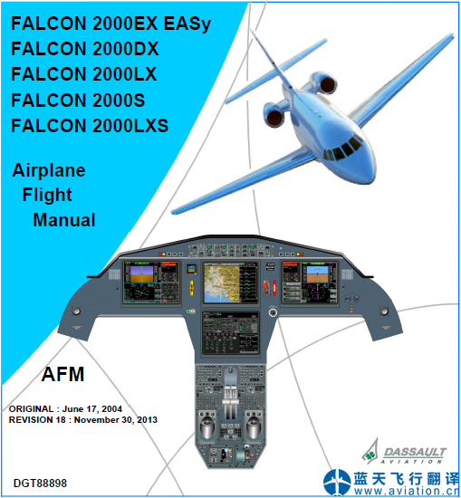 ![]() 獵鷹2000公務(wù)機機快速檢查單 FALCON 2000 Quick Reference Handbook FALCON 2000EX EASy、FALCON 2000DX、FALCON 2000LX、FALCON 2000S、FALCON 2000LXS 機型 Airplane Flight Manual REVISION 18 : November 30, 2013 獵鷹2000EX EASy、獵鷹2000DX、獵鷹2000LX、獵鷹2000S、獵鷹2000LXS 機型飛機飛行手冊修訂18 : November 30, 2013 ![]() 獵鷹2000公務(wù)機飛機飛行手冊 FALCON 2000 Airplane Flight Manual |