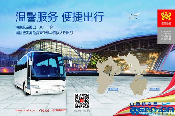 海航“機(jī)票+大巴”產(chǎn)品城際接送服務(wù)的運(yùn)輸網(wǎng)已覆蓋北京、上海周邊以下城市點(diǎn)(后續(xù)將增加更多通達(dá)城市,具體線路以實(shí)時(shí)查詢?yōu)闇?zhǔn)): 北京首都機(jī)場(chǎng)至天津、秦皇島、滄州、唐山等城市; 上海浦東機(jī)場(chǎng)至杭州、無(wú)錫、蘇州、昆山、青田等城市。 旅客可在完成機(jī)票預(yù)訂后同時(shí)預(yù)訂城際巴士行程,預(yù)訂途徑包括海航各大簽約代理點(diǎn)、海航各境內(nèi)外直屬售票處、或直接撥打海航服務(wù)熱線95339。旅客在乘坐城際巴士時(shí),只需在北京首都機(jī)場(chǎng)、上海浦東機(jī)場(chǎng)或周邊城市的空巴服務(wù)柜臺(tái)出示有效身份證件,經(jīng)柜臺(tái)工作人員驗(yàn)證后,即可按秩序乘坐臨近車次的城際巴士抵達(dá)目的地。更多產(chǎn)品信息請(qǐng)點(diǎn)擊海航官網(wǎng)產(chǎn)品介紹頁(yè)面:www.hnair.com/yhytj/yyfx/201505/t20150520_14388.html。 2015年,隨著海航北京=圣何塞,上海=波士頓、上海=西雅圖新開(kāi)國(guó)際航線盛大啟航,海航京滬兩地的國(guó)際航線網(wǎng)絡(luò)得以進(jìn)一步豐富,海航將不斷致力于為旅客打造五星級(jí)服務(wù)體驗(yàn),豐富更多完美出行選擇。