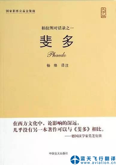 “我按照自己翻譯的習(xí)慣,一句句死盯著原文譯,力求通達(dá)流暢,盡量避免哲學(xué)術(shù)語(yǔ),努力把這篇盛稱(chēng)語(yǔ)言生動(dòng)如戲劇的對(duì)話(huà)譯成戲劇似的對(duì)話(huà)。柏拉圖的這篇絕妙好辭,我譯前已讀過(guò)多遍,蘇格拉底就義前的從容不懼,同門(mén)徒侃侃討論生死問(wèn)題的情景,深深打動(dòng)了我,他那靈魂不滅的信念,對(duì)真、善、美、公正等道德觀念的追求,給我以孤單單生活下去的勇氣。” 2000年,中譯本《斐多》出版,被稱(chēng)為“迄今為止最感人至深的哲學(xué)譯本”。 楊絳先生談翻譯