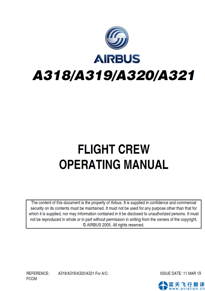 北京藍(lán)天飛行翻譯公司承接大型公務(wù)機(jī)公司的2019年3月11日版本空客公務(wù)機(jī)ACJ319飛行機(jī)組操作手冊(cè)(FCOM FLIGHT CREW OPERATING MANUAL)、ACJ319快速檢查單(QRH QUICK REFERENCE HANDBOOK)和ACJ319飛機(jī)飛行手冊(cè)(AIRPLANE FLIGHT MANUAL)翻譯任務(wù) 11 MAR 19 ACJ319 FLIGHT CREW OPERATING MANUAL, QRH QUICK REFERENCE HANDBOOK and AIRPLANE FLIGHT MANUAL Translation ![]() ACJ319 FLIGHT CREW OPERATING MANUAL ACJ319 飛行機(jī)組操作手冊(cè) ![]() ACJ319 QUICK REFERENCE HANDBOOK ACJ319 快速檢查單 |