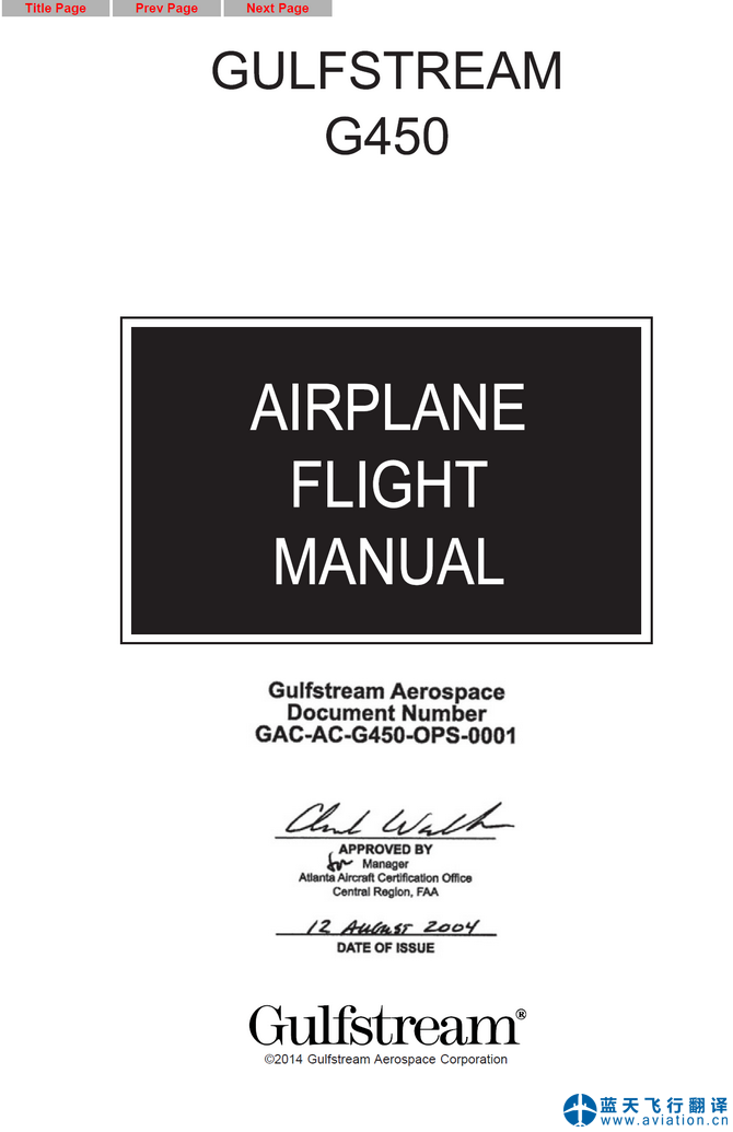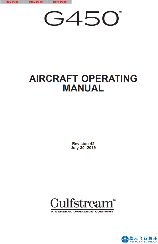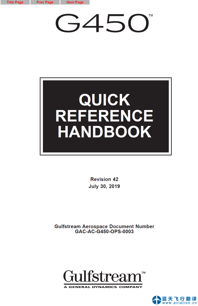 北京藍(lán)天飛行翻譯公司完成大型公務(wù)機(jī)公司的2019年7月30日,第42版灣流G450全套飛行手冊翻譯任務(wù) G450 Flight Manual Translation