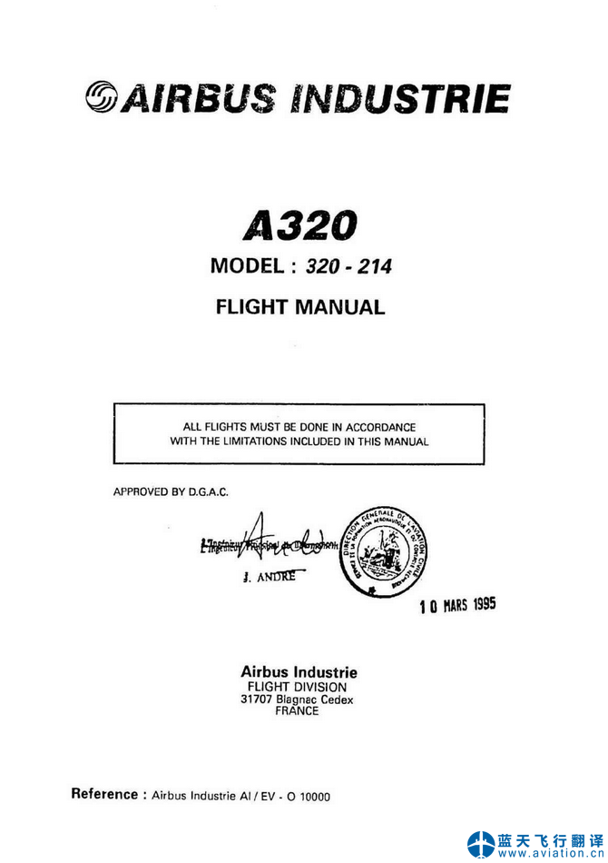 北京藍(lán)天飛行翻譯有限公司本次翻譯的A320飛行手冊(cè)總共包含5架飛機(jī),構(gòu)型為320-214、321-211、320-216。A320飛行機(jī)組操作手冊(cè)、A320快速檢查單和A320飛行機(jī)組技術(shù)手冊(cè)修訂日期為2020年6月3日,A320飛機(jī)飛行手冊(cè)修訂日期為2020年5月28日。