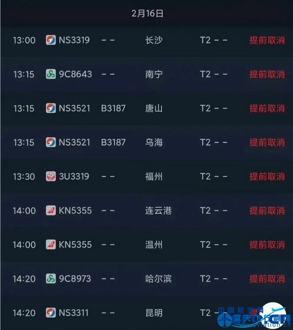 2月16日,有消息稱中午前后多個(gè)飛往石家莊的航班備降其他機(jī)場或返航。有網(wǎng)友稱是大霧原因,還有網(wǎng)友稱石家莊上空全部都是軍機(jī)。